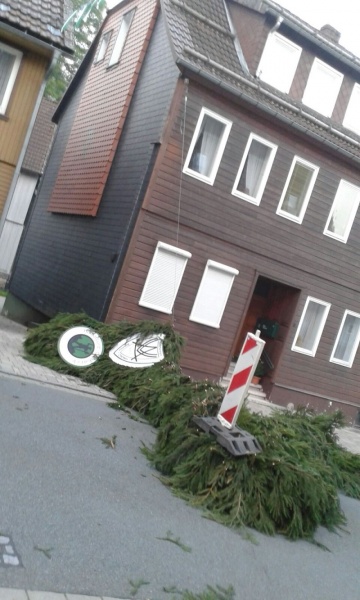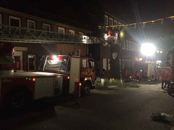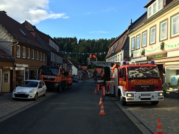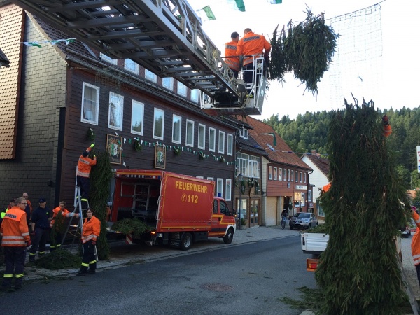 So wurde nach dem feierlichen Anlass die Uniform gegen die Einsatzbekleidung getauscht und die Reste der Ehrenpforte mit Hilfe eines ortsansässigen Unternehmen zur Feuerwache transportiert wo sie dann in ihre Einzelteile zerlegt wurde. es wurde beschlossen, am folgenden Montag mit dem Wiederaufbau zu beginnen. Und dieses mit einem neuen, doppelt so starken Stahlseil.