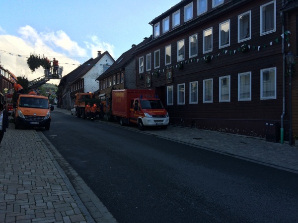 Nachdem dem der Montag noch Teil des Heimatfestes war, haben wir uns Dienstag getroffen, um die Ehrenpforte wieder Abzubauen. Das ganze war nach rund einer halben Stunde erledigt. Wobei natürlich an der Feuerwache auch noch Nachrebeiten nötig waren. Insgesamt dauerte die Rückbauaktion gurt eineinhalb Stunden.