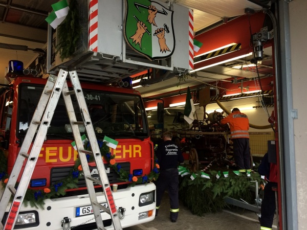Nach dem Umzug wurden dann die Fahrzeuge und alles andere abgeschmückt und wieder "Feuerwehrtauglich" gemacht.