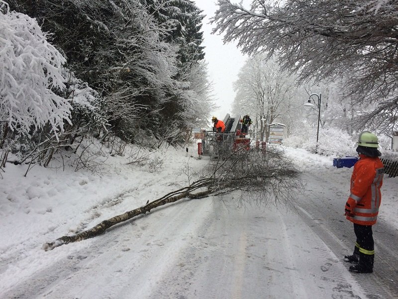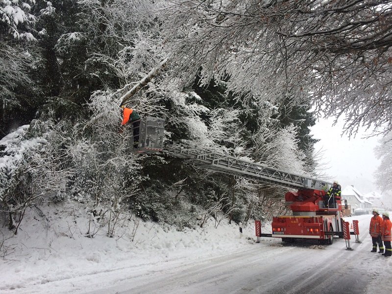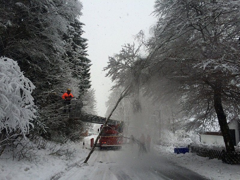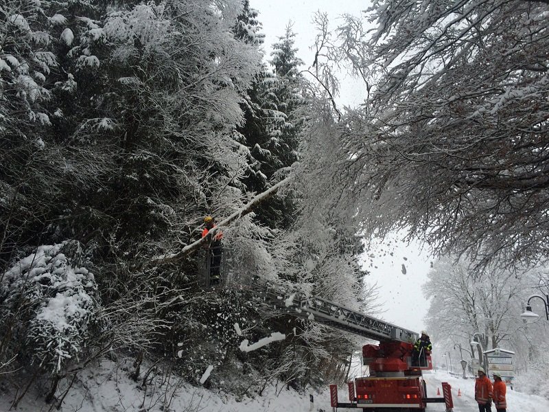 Ein Baum drohte im Schultal auf die Fahrbahn zu stürzen. Es ist anzunehmen, dass es sich hierbei noch um Nachwirkungen des Stumtief Niklas handelt. Auch der heftige Schneefall zur Zeit wird sein übriges dazu beigetragen haben.Die Straße wurde für ca. 20 Minuten voll gesperrt und der Baum mittels Drehleiter beseitigt.