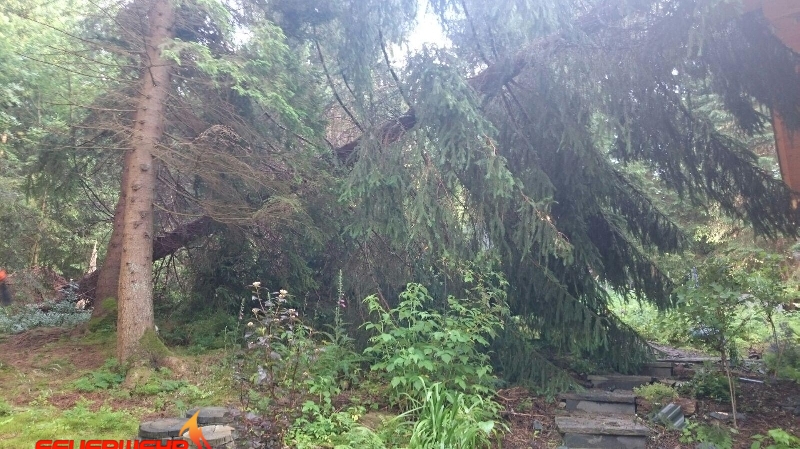 Aufgrund der Wetterlage gab ei n Baum den Naturgewalten nach und stürzte auf ein Gebäude an der Rothenberger Straße.Nach Sicherungsmaßnahmen wurde der Baum entfernt.