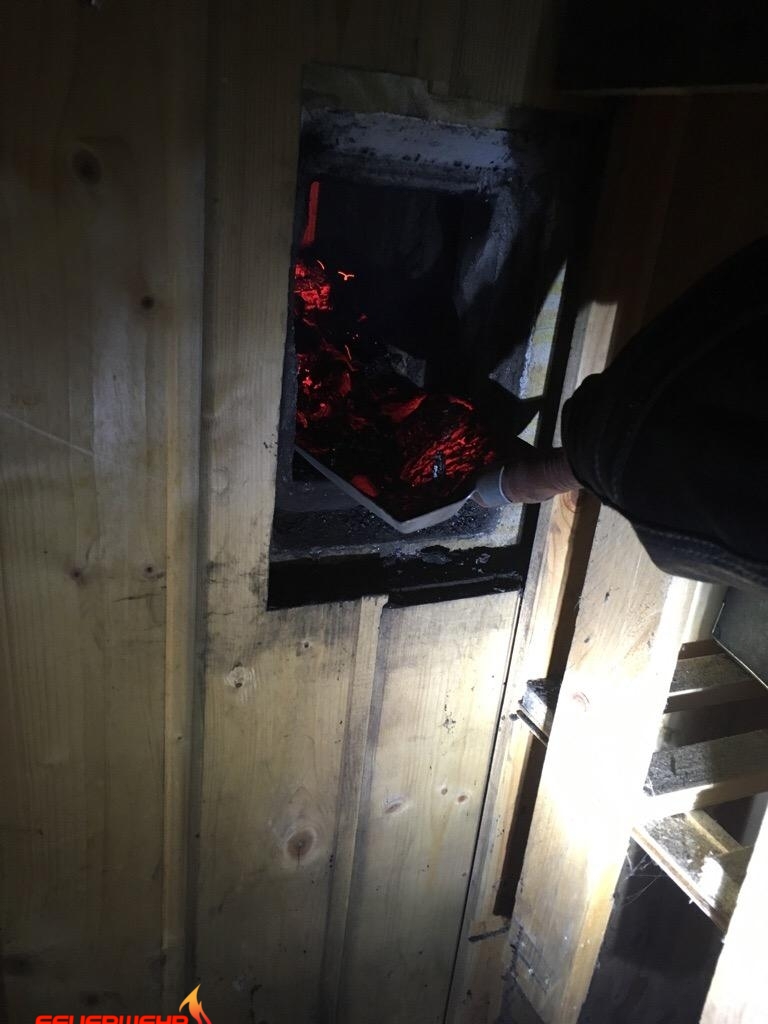 Mehrere Male musste der Schornstein mittels Kugel und Besen gereinigt werden. Um das Schornsteinreinigungsgerät, welches einer enormen Hitze ausgesetzt war, zu schonen, wurde es immer wieder gekühlt.