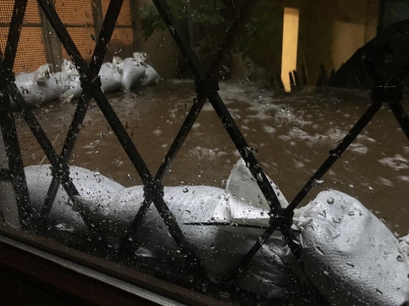 Mit Sandsäcken, Man(Frau-)power und den paar zur Verfügung stehenden Pumpen wurde versucht, dass Gebäde zu schützen.