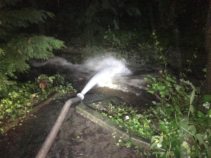 Die zunächst ganz gut zu haltene Lage entwickelte sich dann im Laufe der Nacht zum Problemfall. Zunächst reichte die eine eingesetzte Pumpe nicht mehr aus und es musste mit einer zweiten Unterstützt werden.