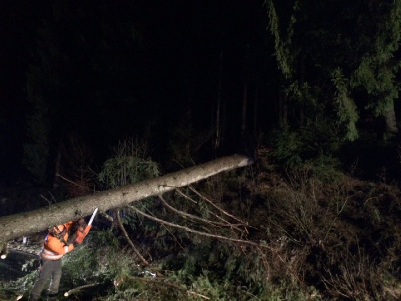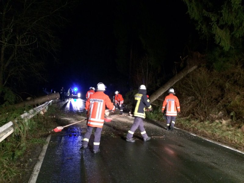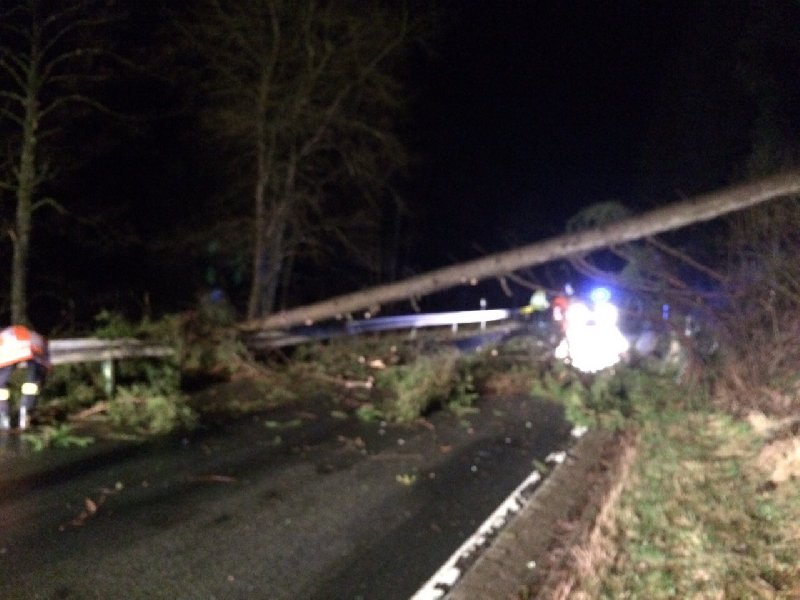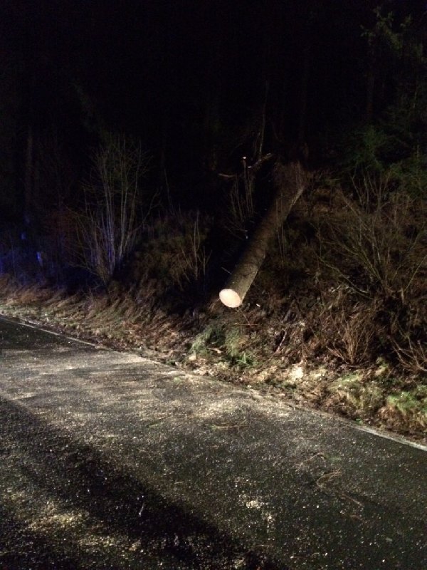 Auf der K38 (Verbindungsstraße Altenau - Clausthal-Zellerfeld) blockierte eine umgefallene Fichte die Straße. Der umstürzende Baum traf einen PKW. Die Fahrerin konnte die Fahrt unverletzt im beschädigten PKW vor eintreffen der Feuerwehr fortsetzen.Die Feuerwehr wurde duch die Polizei alarmiert, welche auch die Straße sperrte.