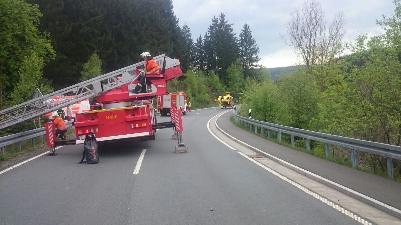 Für die Zeit der Rettung wurde die B498 voll gesperrt.