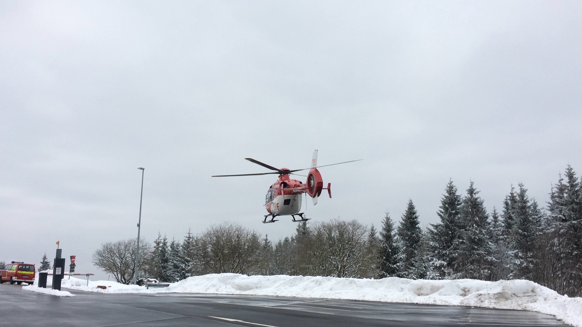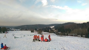 Auf der Ski-Piste Rinderkopf ein Skifahrer gestürzt. Die Feuerwehr Altenau unterstütze den Rettungsdienst beim Transport durch das Gelände |